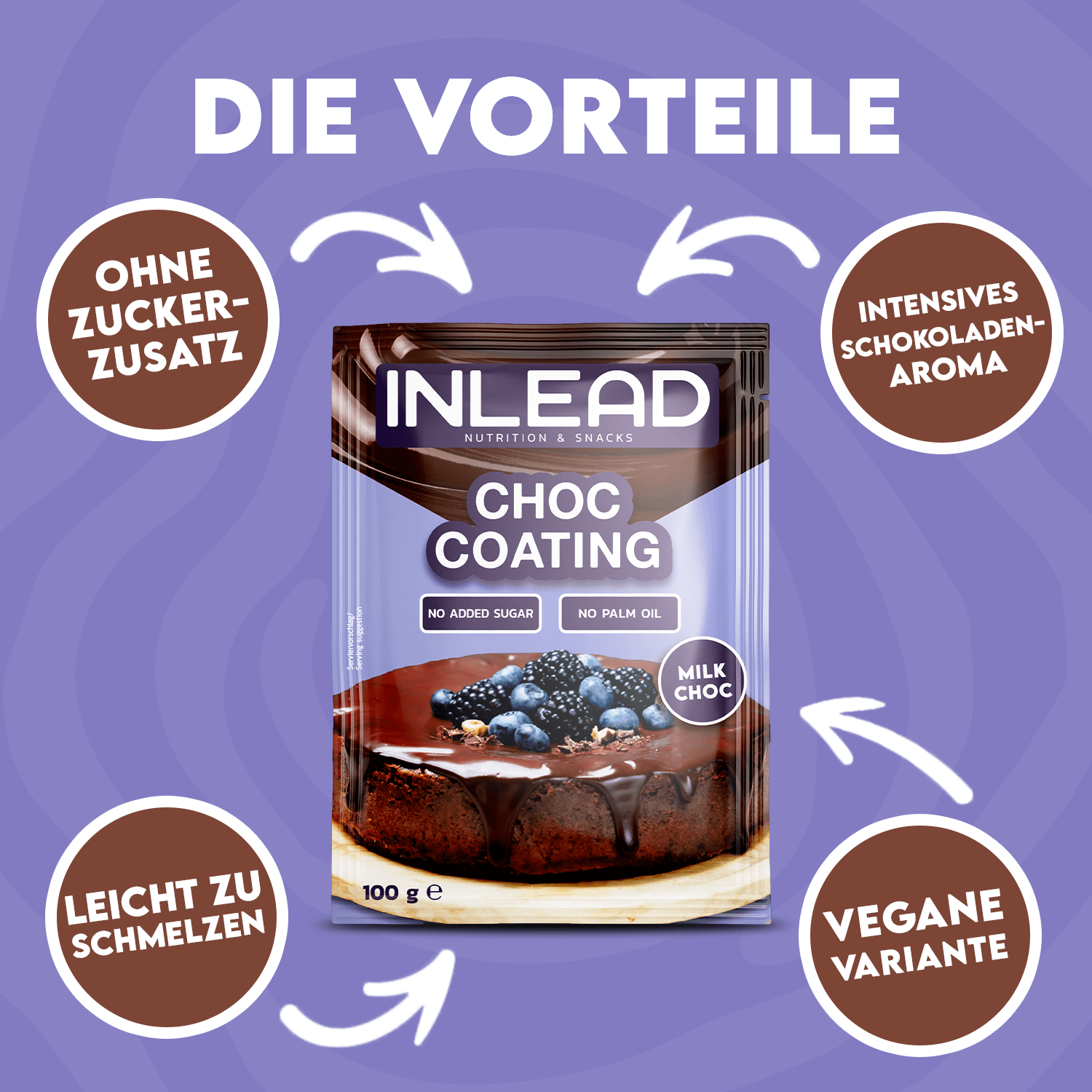 Die INLEAD Choc Coating sorgt für einen glatten, glänzenden Überzug – ohne zugesetzten Zucker und mit intensivem Schokoladengeschmack.