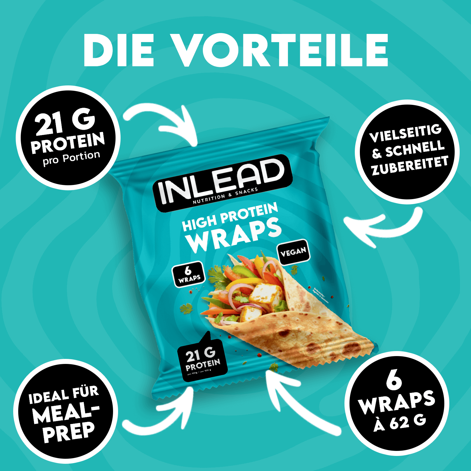 Die INLEAD High Protein Wraps sind dein perfekter Begleiter für schnelle, leckere und ausgewogene Mahlzeiten – ganz nach deinem Geschmack.