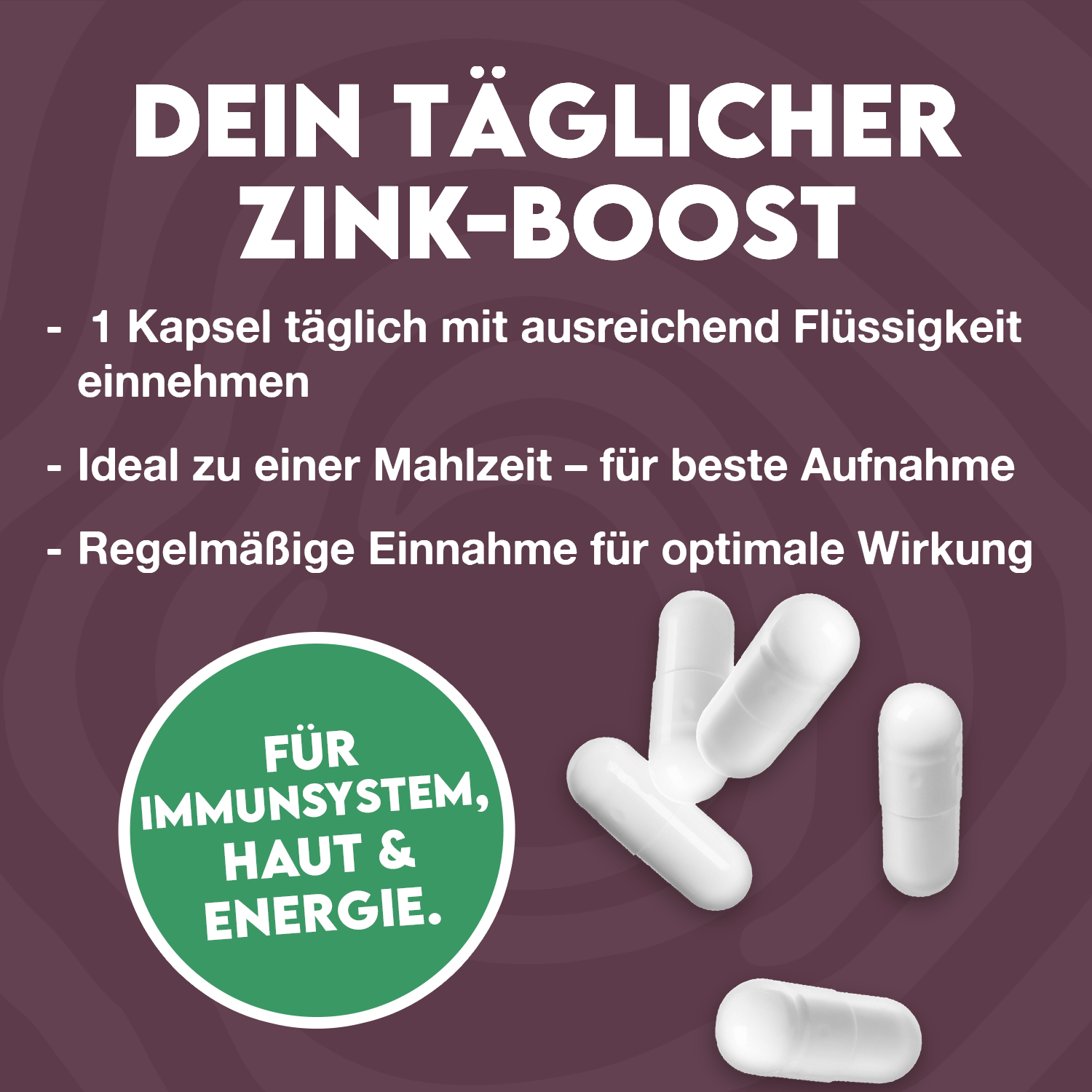 Dank der Chelat-Formel wird das Zink optimal aufgenommen und vom Körper genutzt, um wichtige Funktionen zu unterstützen.